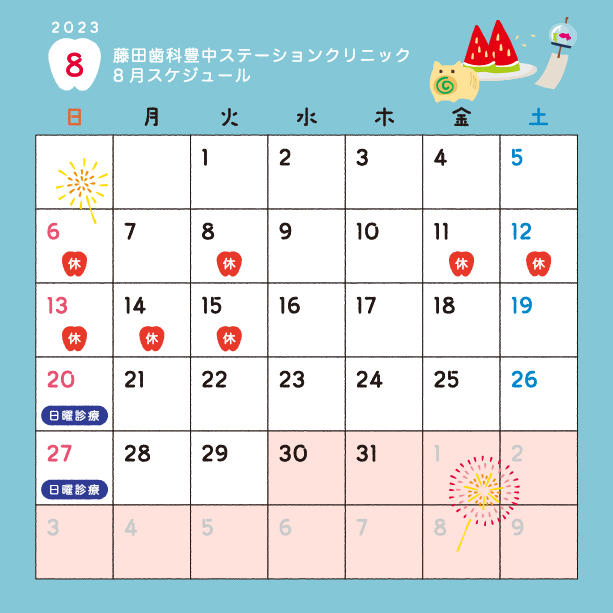 8月の休診日・日曜診療日
